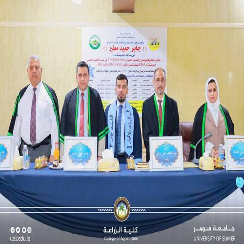 بأسمى آيات التهاني والتبريكات يتقدم السيد عميد كلية الزراعة – جامعة سومر الأستاذ الدكتور باسم خميس كوتي وبمشاركة تدريسيي وموظفي الكلية بالتهنئة إلى الموظف المثابر على ملاك الكلية جابر حميد مطير بمناسبة مناقشته رسالة الماجستير في تخصص البستنة وهندسة الحدائق في كلية الزراعة والأهوار – جامعة ذي قار.
